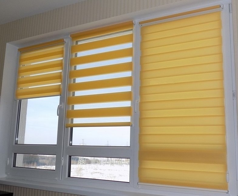 Рулонные шторы «День-Ночь» стали популярными в последнее время. Они представляют собой полотна, состоящие из горизонтальных, чередующихся прозрачных и непрозрачных полос. Их можно поднимать и опускать, регулируя степень освещенности комнат.