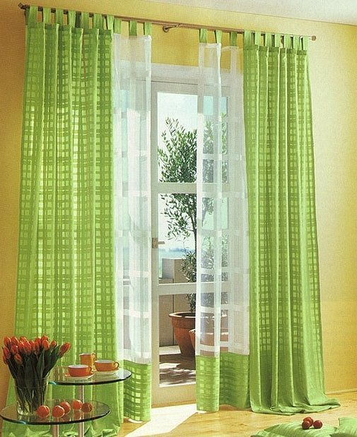 Например, замечательно смотрится свет кухонных штор на петлях, сшитых из льняной, хлопчатобумажной или портьерной ткани. В зависимости от стиля интерьера можно украсить петли дополнительными украшениями — лентами, бисером, шнурками, лентами и т. д. Также можно обыграть интересные для кухни цвета и выбрать петли контрастного оттенка для штор. Чтобы оригинально оформить окно, нередко используют сочетание штор с петлями и римских жалюзи.
