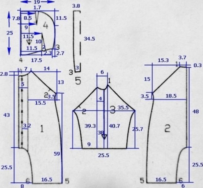 - Выкроить 1 деталь перед — спинка со сгибом и 2 детали рукава.