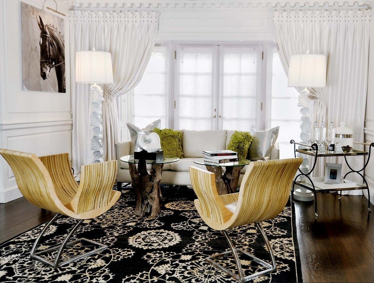 При отделке любого помещения, включая гостиную, есть неписаное правило, которое известно всем: если обои в комнате имеют узоры, то шторы должны быть простыми, и наоборот. Но есть исключения в том, как оформить окно в гостиной шторами, и существует масса примеров успешного использования принтов для декора и текстильного оформления оконных проемов.