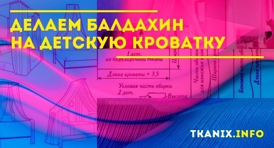 При помощи дополнительных тканей можно соорудить различные украшения и банты, либо приобрести уже готовые аксессуары, которые продаются в любом отделе тканей. Чтобы закрыть детскую кроватку новым атрибутом, для крепления пришиваются ленты из основной ткани либо же дополнительных лент.