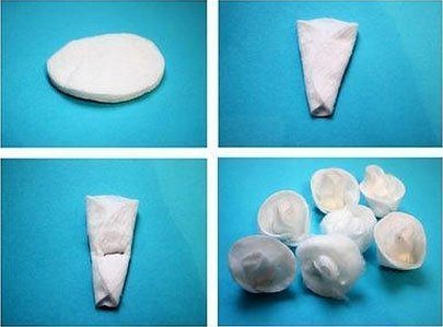 Важным является то, как именно скрутить ватную заготовку. Вот еще мастер-класс, как можно скрутить, помять, согнуть ватный диск:
