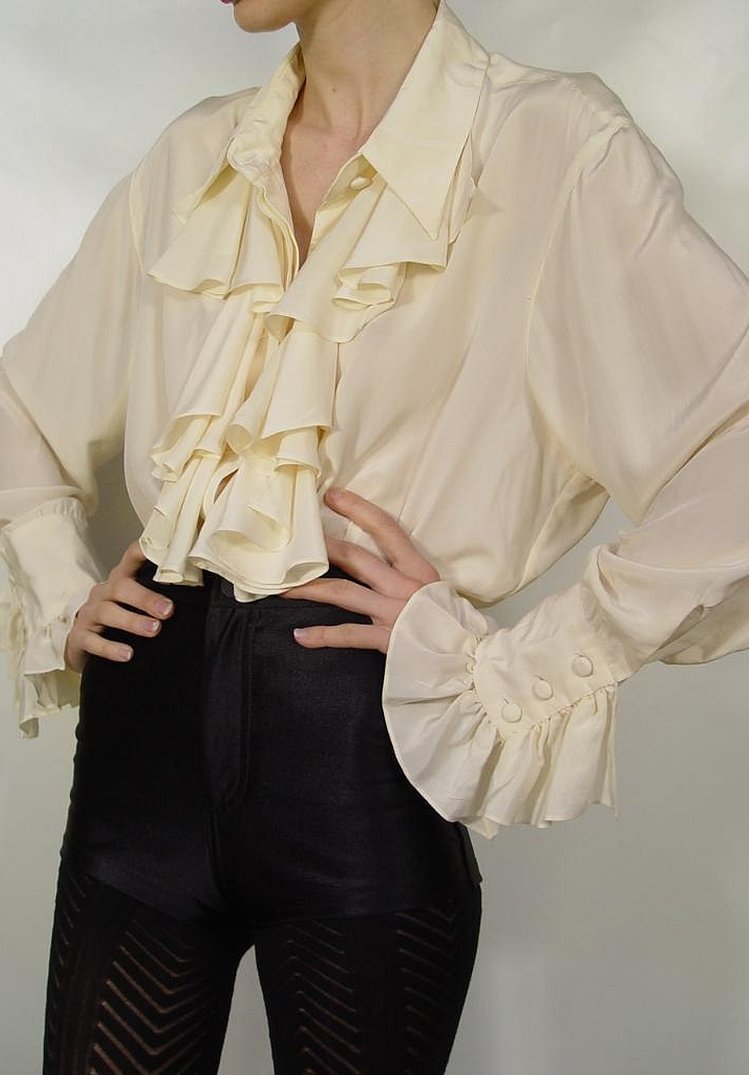 Воланы и жабо любят использовать в декоре элегантных блуз такие современные дизайнеры, как Карл Лагерфельд, Джанфранко Ферре, Ральф Лорен, Зак Позен.