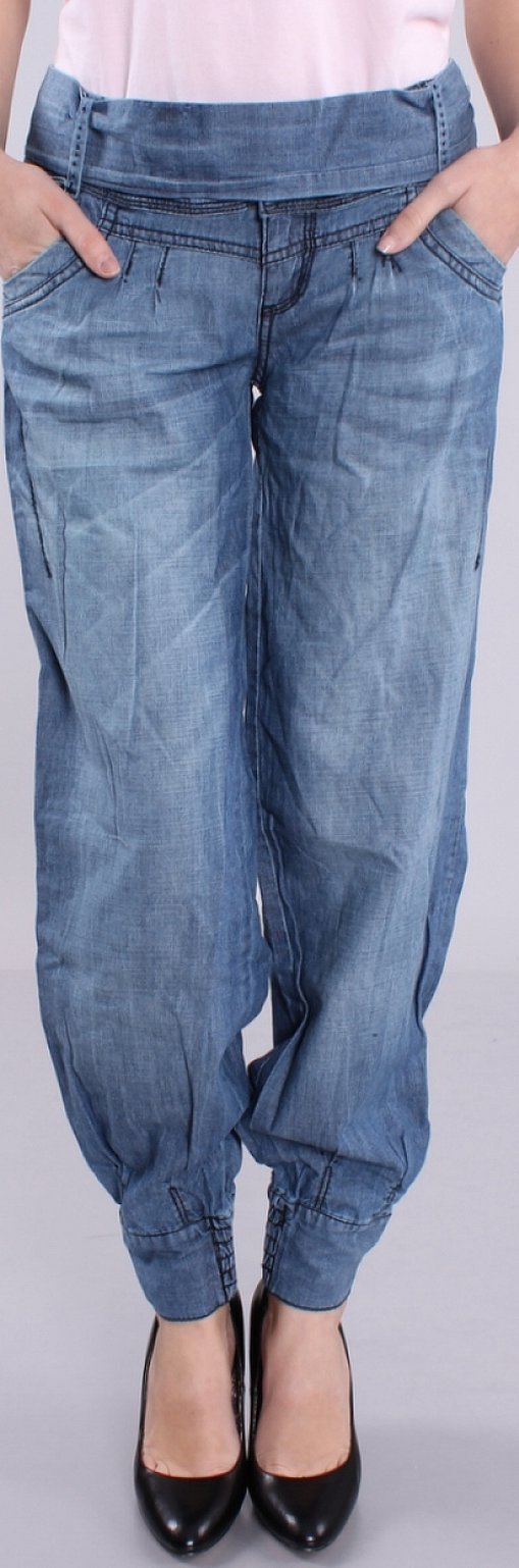 Широкие длинные джинсы со свободным кроем. Характерная особенность – тугая манжета-резинка в области щиколотки. Хорошо смотрятся с высоким каблуком.
