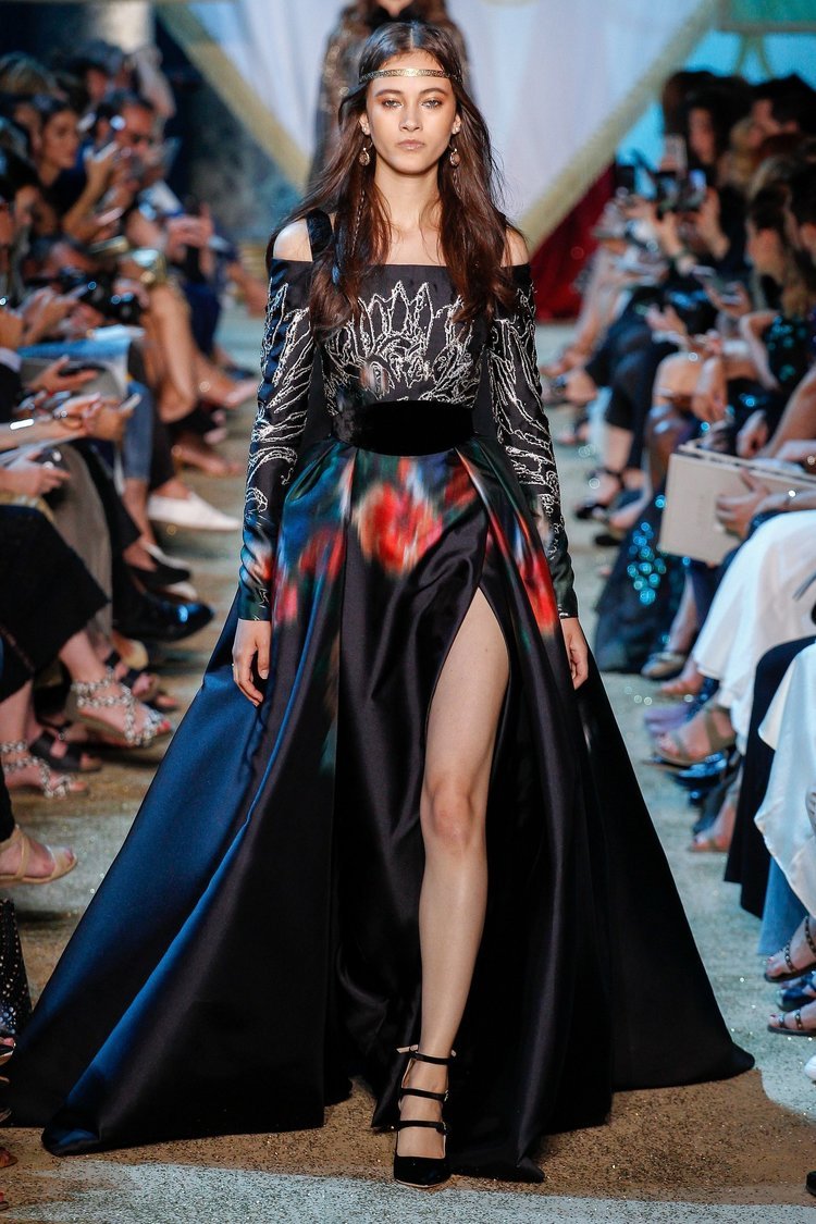 Атласное платье с бархатным поясом с кутюрного показа Elie Saab