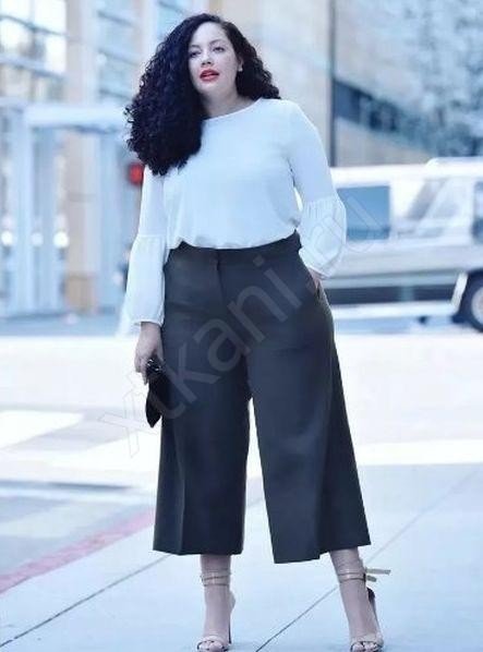 Офисный стиль одежды для полных женщин является одним из самых выигрышных. Он помогает сгладить недостатки фигуры и подчеркнуть достоинства. Главное, знать основные правила. Идеальным вариантом для женщины с пышными формами станет платье-футляр. Хорошо будут смотреться вещи с V-образным вырезом, он визуально удлинит шею и в меру подчеркнет красивое декольте. Не стоит носить обтягивающих вещей, это будет выглядеть вульгарно. Блузки в форме трапеции ниже бедра великолепно скроют лишние килограммы. Брюки следует выбирать прямого кроя, эффект придаст вертикальная стрелка. Визуально она сделает Вас стройнее. Фактура ткани не должна быть объемной, а рисунок мелким. Отлично смотрится вертикальная полоска.