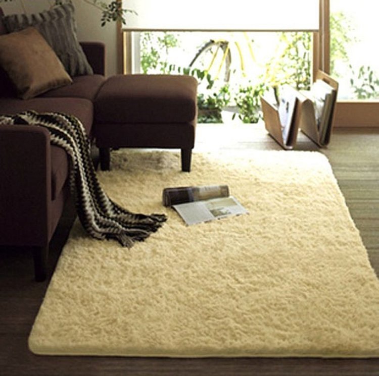 Белый ковер с длинным ворсом в интерьере