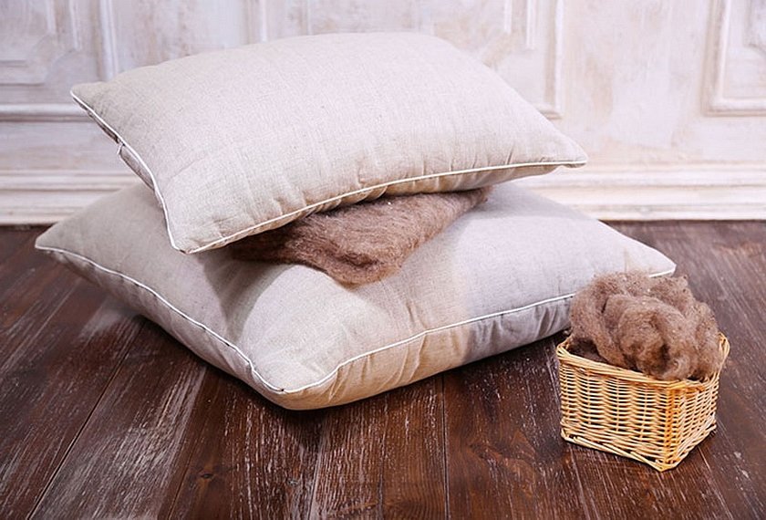 Самое доступное натуральное сырье, которое давно используют, чтобы шить подушки. Шерсть сохраняет тепло и удерживает форму, не впитывает влагу. Но в то же время она может деформироваться, нуждается в регулярной чистке порошковыми и другими средствами.