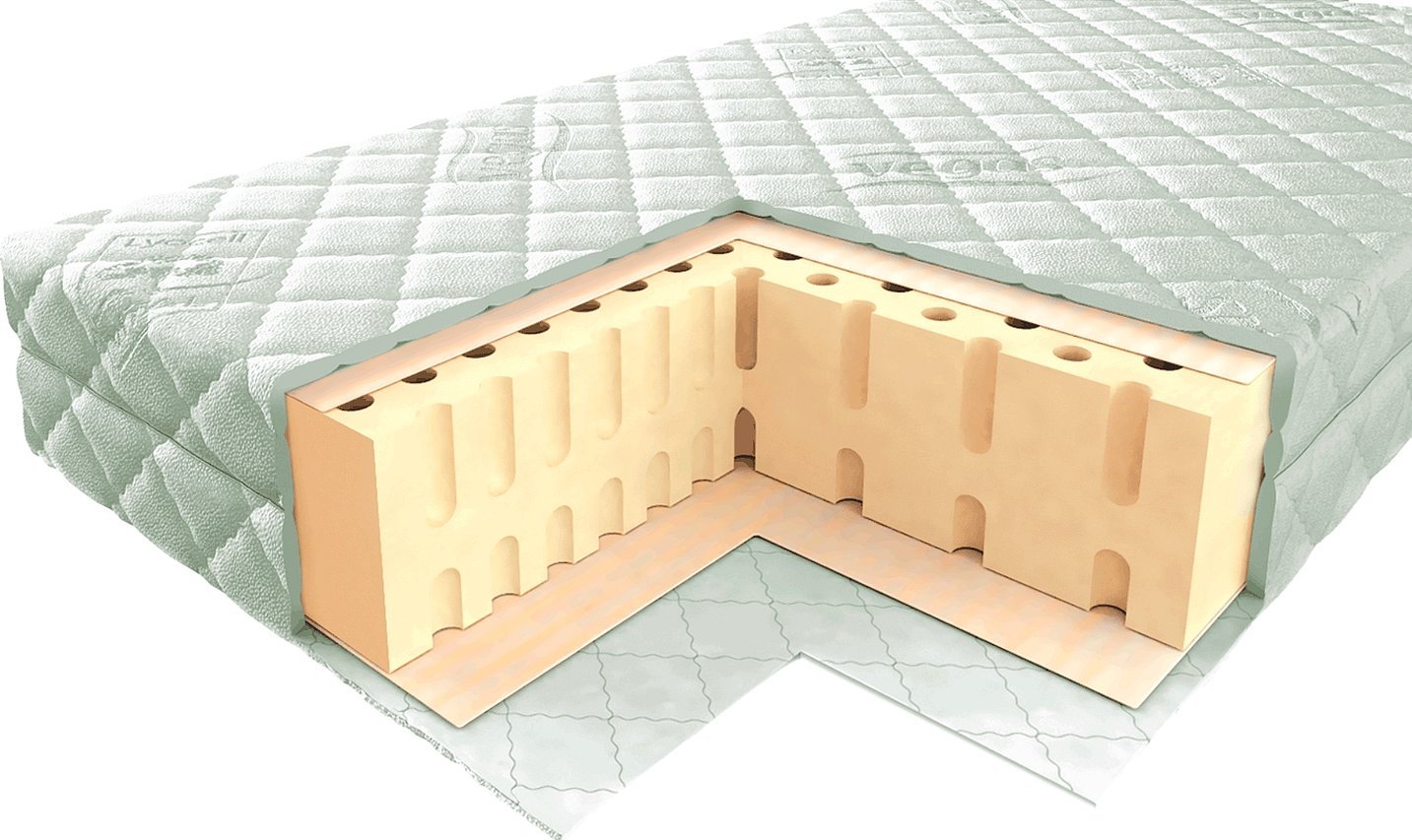 Модель L1 - мягкий, но упругий матрас на основе латексного блока высотой 14 см, 3 зоны жесткости.