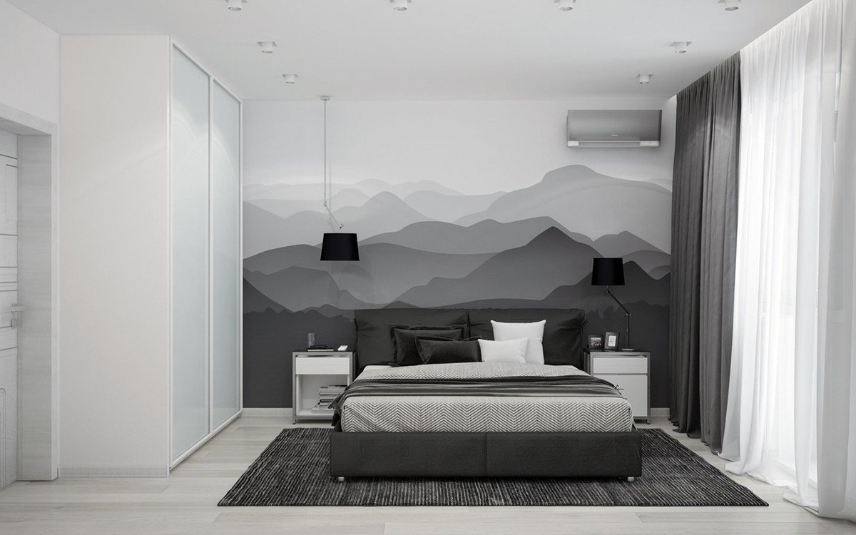 13. Расслабляющий серый и классический белый игрой оттенков напомнят черно-белое кино или старинные фотографии. К такому сочетанию отлично подойдут геометрические узоры, абстракция. Не стоит нарушать атмосферу очарования яркими деталями.