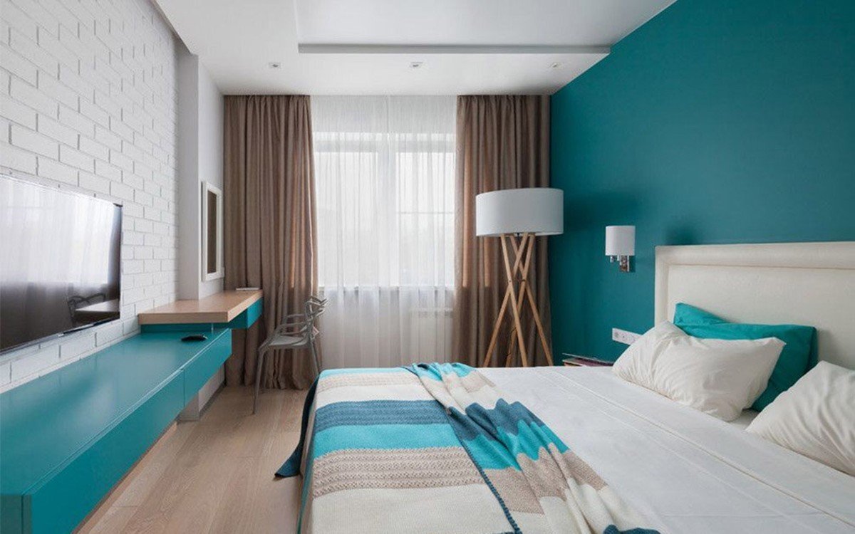 3. Белый и бирюзовый приносят ощущение радости и безмятежности. Позвольте превалировать белому цвету, освежающей бирюзе отдайте акценты и детали оформления.