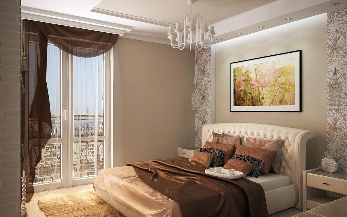 4. Ненавязчивый бежевый и коричневый цвет благородное, элегантное сочетание. В такой спальне тепло, уютно, комфортно. Бежевый цвет создает удачный фон, зрительно увеличивает объем, позволяет применять в отделке другие цвета: зеленый, бордовый, желтый, белый.