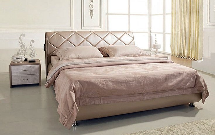 Ассортимент кожаных кроватей здесь огромен. Можно найти варианты из натуральной, искусственной или экокожи, а также сочетанием данных материалов. Разнообразен и дизайн представленных изделий – от строгих классических кроватей до самых смелых решений и необычных форм в стиле гламур.