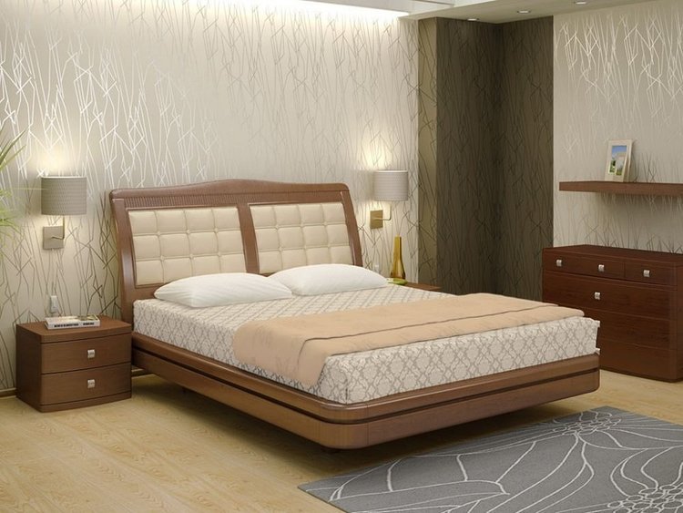 - Эвита – кровати из массива дерева с обивкой боковых частей. На выбор покупателя обивка может быть выполнена из ткани, экозамши или экокожи. Также имеется четыре варианта изголовий;