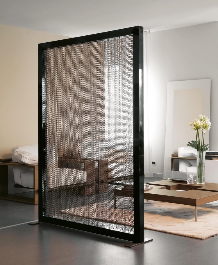 - Ширма, разделяющая комнату или иное помещение, может создать лишь визуальное изменение пространства;