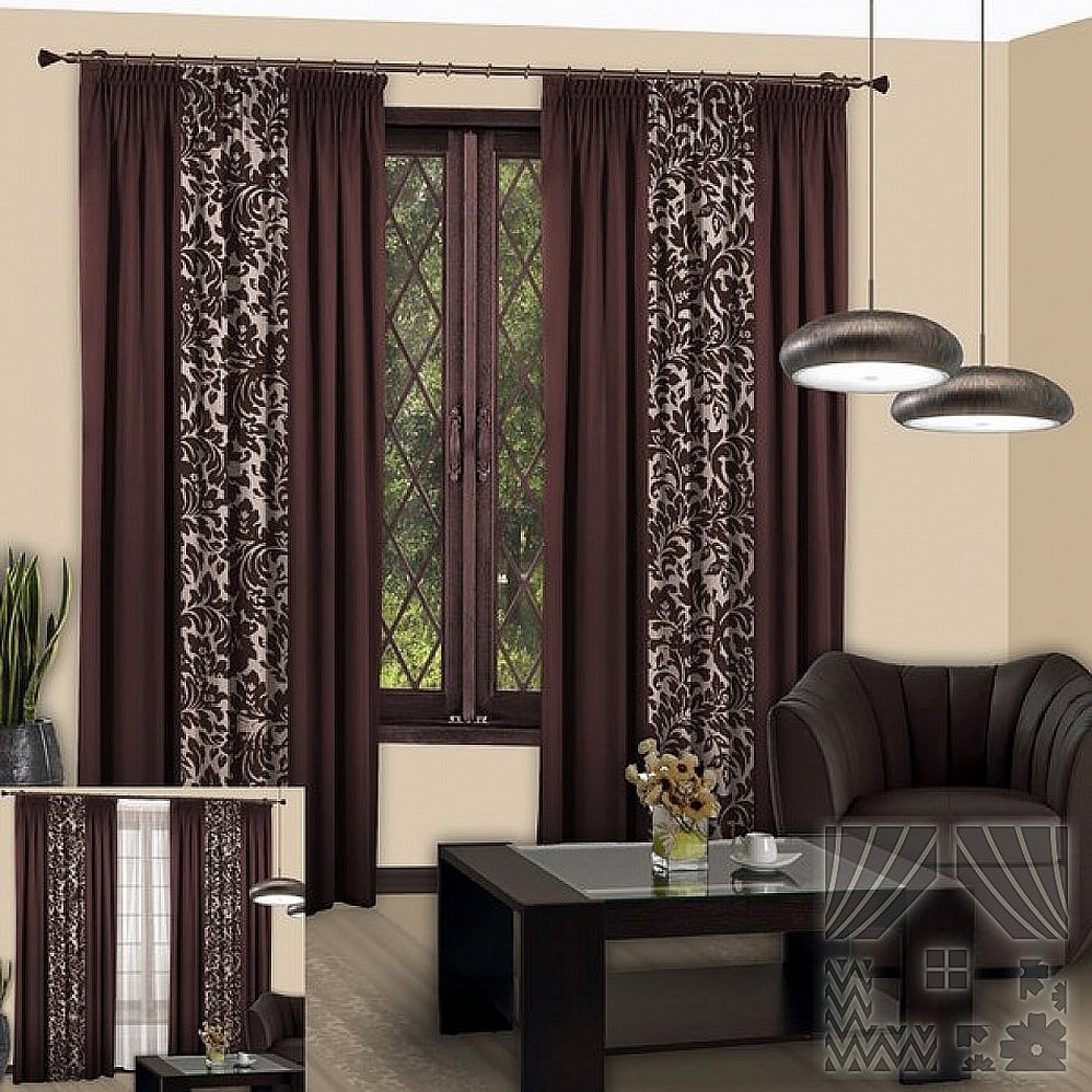 Соответствие цветовой гамме интерьера. Здесь тоже не стоит подбирать оттенок в тон отделке стен, так как это будет выглядеть невыразительно и расплывчато. Например, бежевые пастельные тона в комнате прекрасно дополнят занавески коричневого цвета. Если основа синего цвета, то обратите внимание на синий оттенок для штор.