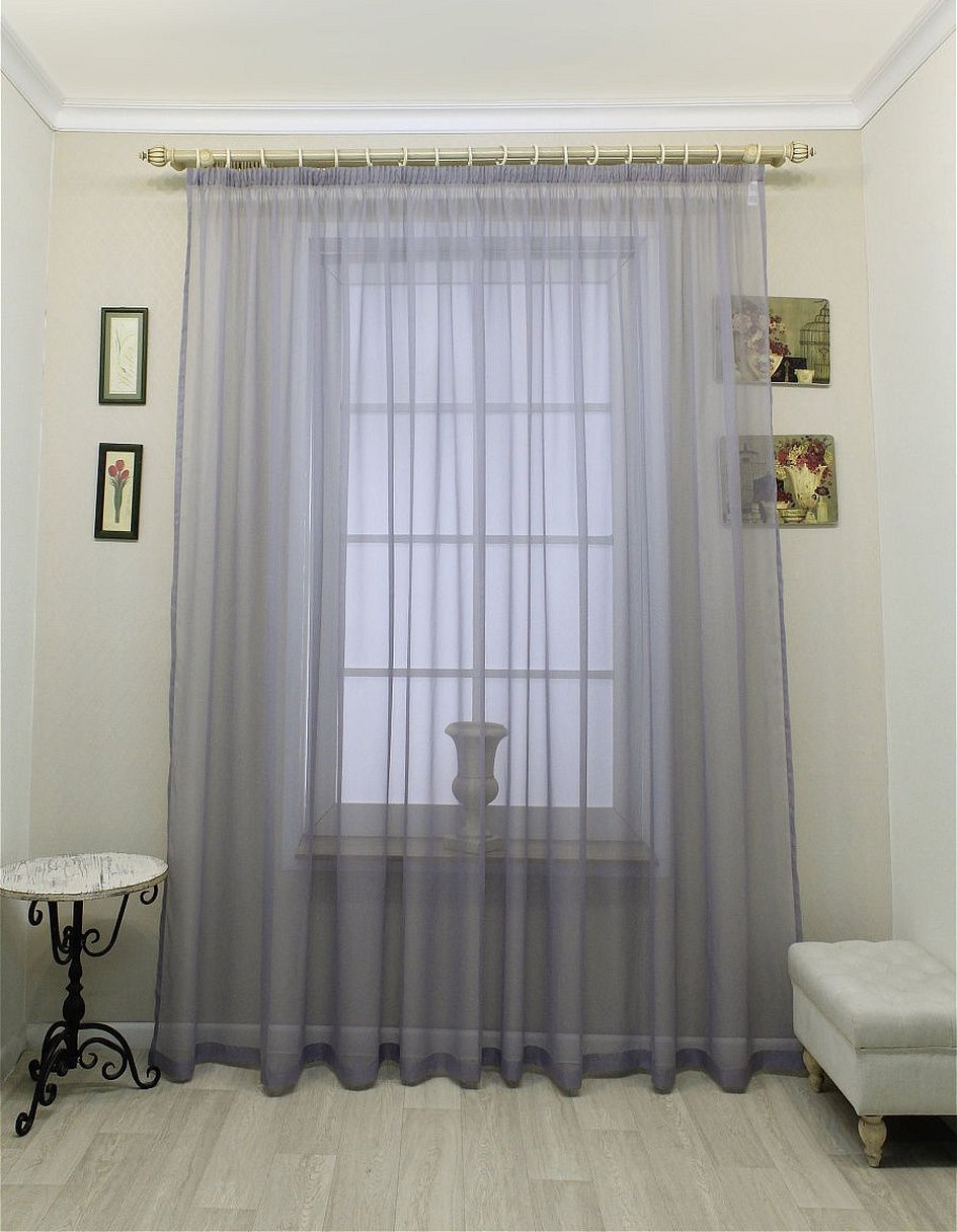 Для гостиных подойдут короткие тюли или максимально длинные, достающие до пола.