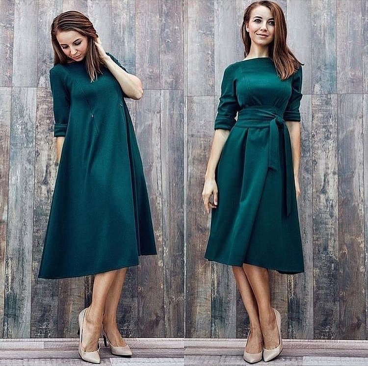 Абсолютной палочкой-выручалочкой на период беременности станут платья. В прохладную погоду, к примеру, спасет платье-свитер в сочетании с плотными колготками. В более теплое время мамочки могут нарядиться в нежные платья-рубашки, легкие и озорные платья-майки и сарафаны. Для игривого образа подойдет трикотажное платье длины миди, оно хорошо тянется и выглядит очень женственно и актуально.