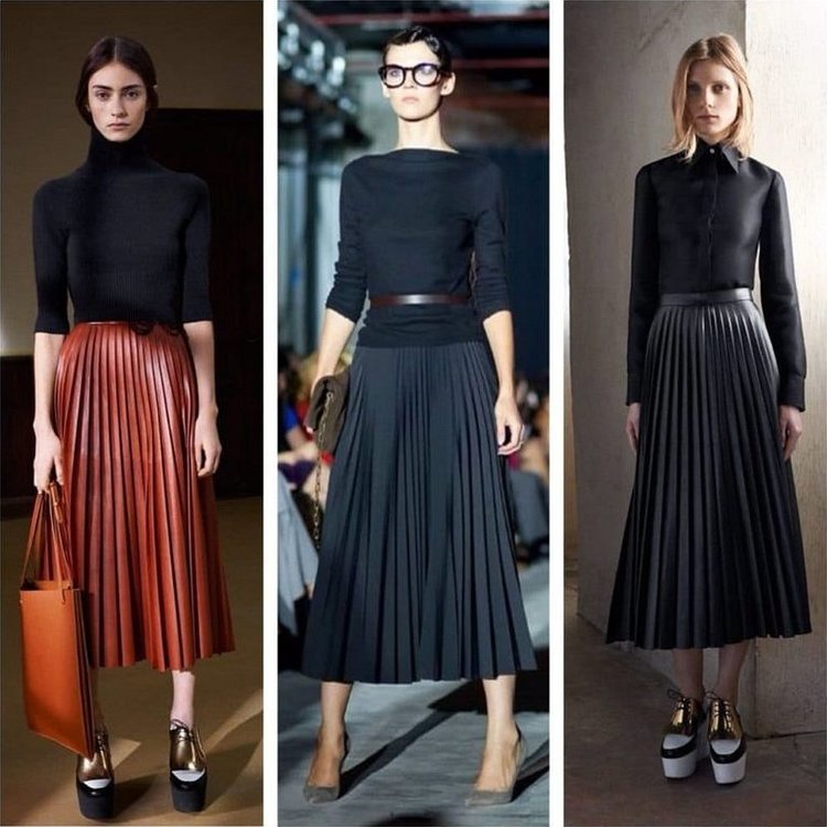 Один из камбеков ушедшего года ̶ плиссированная юбка ̶ продолжает торжествовать. В тренде ̶ широкий диапазон тонов, включающий темные, светлые оттенки и принты. Длина моделей также может быть любой: кокетливая мини, варианты до середины колена и «в пол».