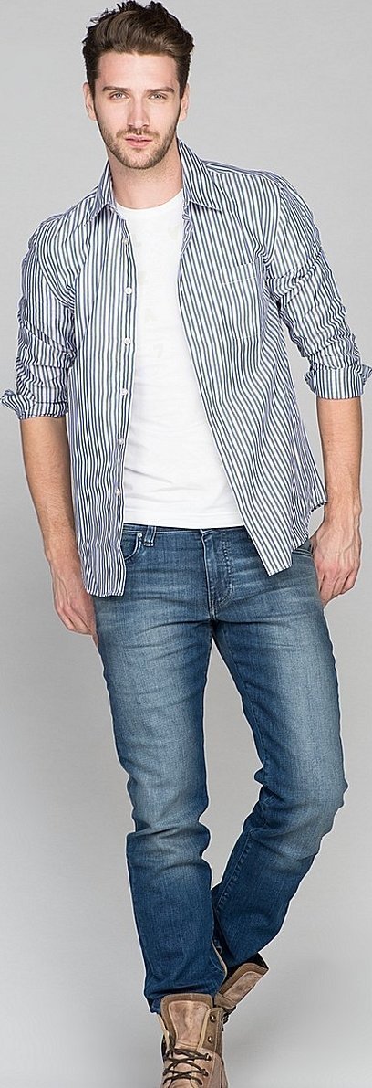 В гардеробе любого мужчины всегда найдется рубашка в клетку и джинсы. Это основа стиля кантри. К образу стоит добавить высокие сапоги, платок и ремень с клепками.