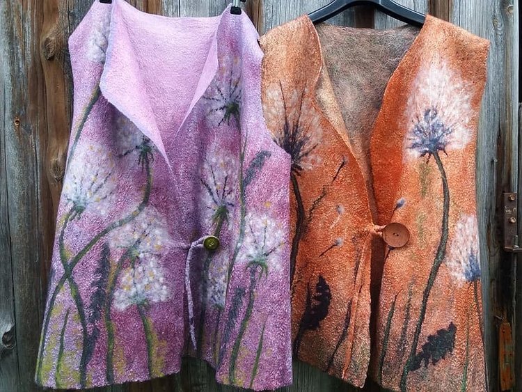 Из ткани войлока можно изготовить различную одежду: пальто, жилетки, юбки, платья, пиджаки. Особенно популярен материал для верхней одежды: пальто, варежек, муфт. Войлочную одежду можно носить даже летом, зимние варианты обычно шьют с теплыми подкладками.