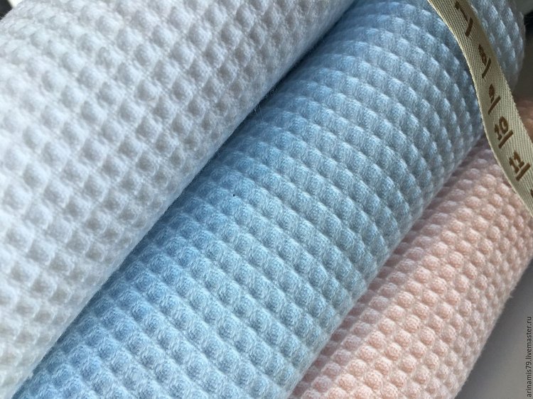 Вафельная ткань сделана таким образом, что ее поверхность по виду напоминает фактуру вафли. Она состоит из небольших квадратиков с выпуклыми краями и углублениями в середине. Такая форма поверхности дает возможность вафельной ткани качественно убирать загрязнения. При использовании полотенца такая структура способствует массажу тела. Более дорогой материал сделан из натуральных компонентов, а дешевые могут содержать примесь синтетических волокон.
