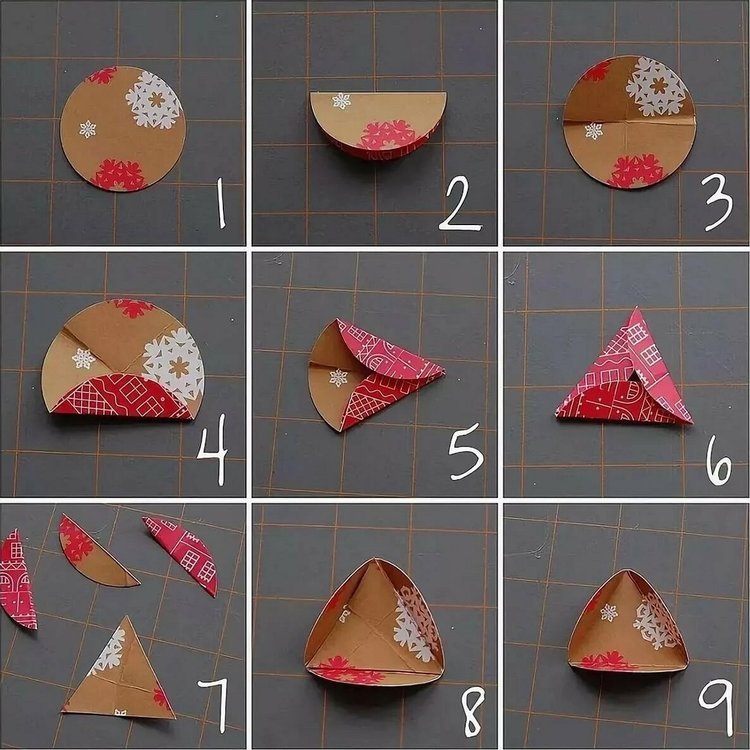 Затем следует согнуть 2 стороны круга и получить равносторонний треугольник.