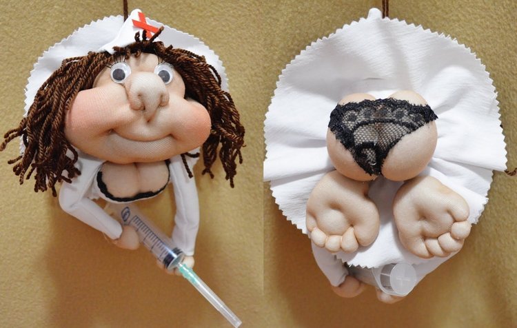 Существует масса вариантов, какую куклу изготовить. Несмотря на общий принцип, каждая игрушка получается абсолютно уникальной. Куклу можно использовать в качестве держателя для туалетной бумаги или в виде тематической игрушки, например, медсестры.