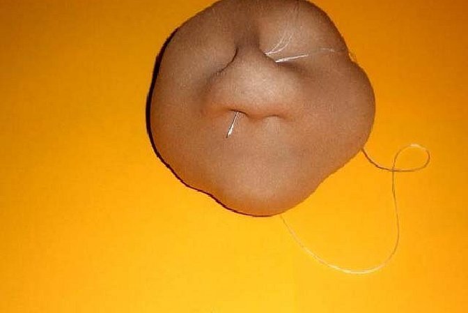 Выводить нитки лучше всего на затылочную область. На этом этапе можно добавить «изюминку» в виде щечек и ямочек.