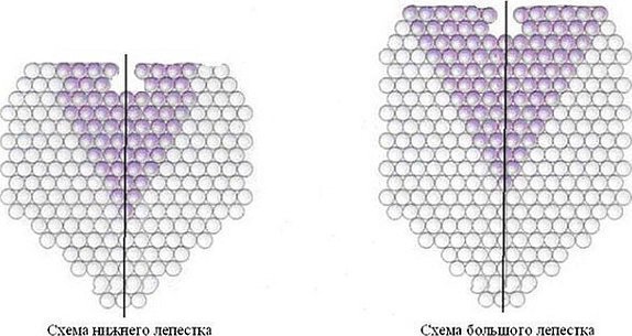 Цветы из бисера должны иметь по 4 лепестка каждый, 2 из которых — широкие, а еще 2 — более узкие. Орхидея каттлея может быть создана с розовой серединкой, а на одном из ее лепестков можно представить небольшие вкрапления другого оттенка.