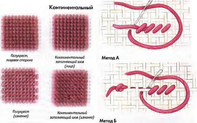 Удлиненный, захватывающий и прямой гобеленовый шов