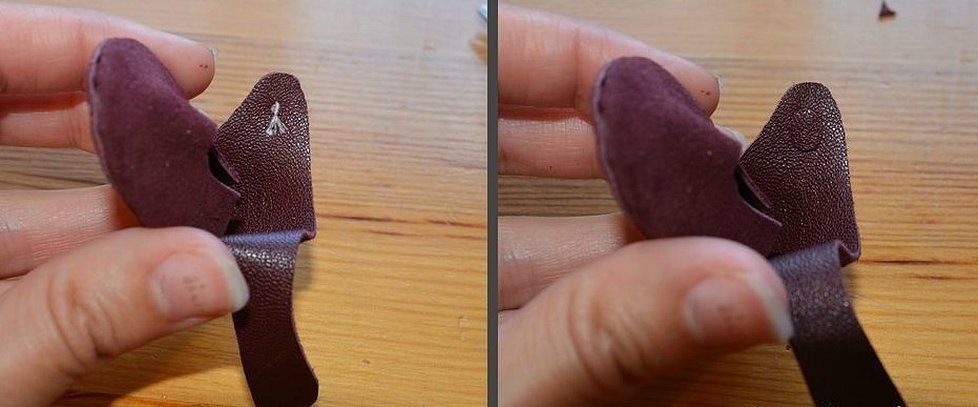 Закрепляют суперклеем кусочек кожи в центральной области.