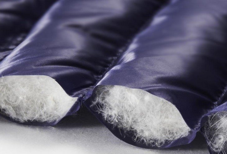 В качественных пуховиках пух распределен равномерно по всей поверхности без каких-либо уплотнений и комочков. Этому способствует множество внутренних швов, делящих площадь пуховика на части, с фиксацией в каждой ячейке пухового наполнителя.