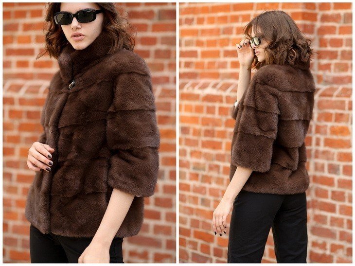 Мех этих зверьков достаточно длинный с естественным блеском, слегка лохматый на вид, шелковистый на ощупь. Подшерсток – высокий. По этим характерным признакам можно отличить русскую норку от подделки. Шубы из него, а это чаще всего длинные манто, получаются теплые, в которых не холодно в любые морозы.