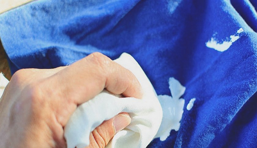 Пятно стирается по направлению от краев в центр. Это не даст растворенному корректору распространиться дальше на одежду.