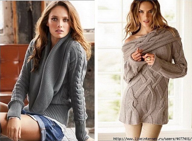 - Крупная грубая вязка свитера будет уместна в неформальной обстановке. Такая одежда хорошо согревает, благодаря специальному объемному плетению, когда воздух задерживается в нитях, сохраняя тепло тела. Подобный свитер отлично смотрится в неформальной обстановке, но к деловому стилю отнести его нельзя. Людям с широкими плечами или лишним весом следует учитывать, что эта модель зрительно сделает их еще крупней.