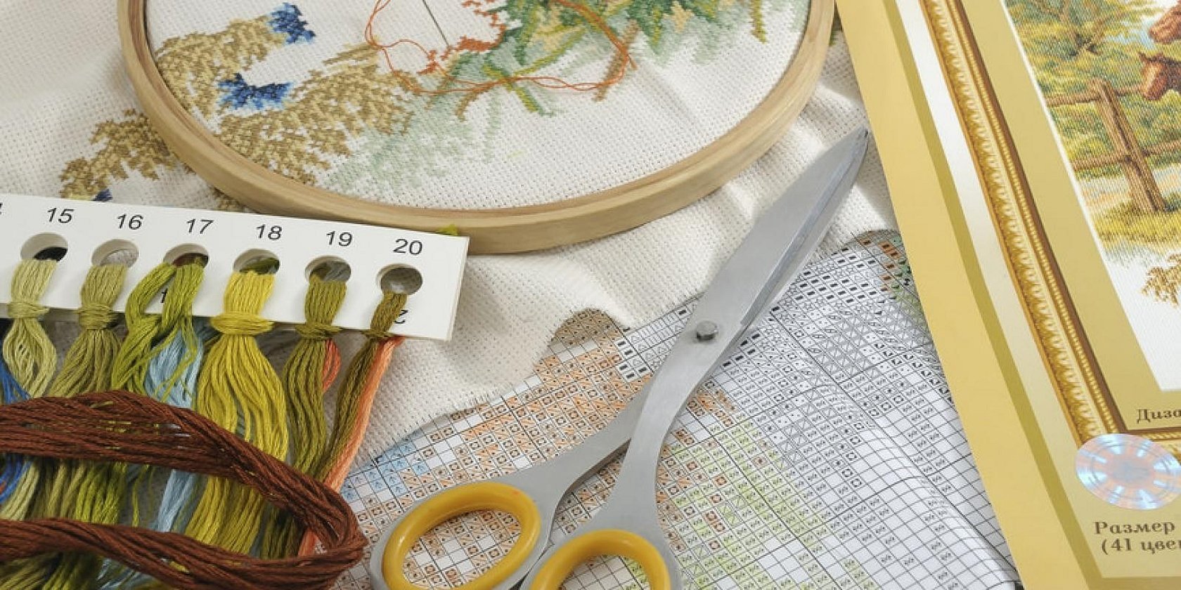 Этот инструмент должен быть очень острым, чтобы без затруднений обрезать нитку, а не распушать ее. Для небольшой картины можно применять маникюрные ножницы. В остальных случаях подойдут портновские.