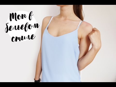 Топ в бельевом стиле — популярная модель. Для ее создания нужно взять атлас, шифон или шелк и кружево для отделки. После конструирования и создания модели по типу обычного топа добавить нагрудные вытачки и пришить кружево. Кружевные детали можно пришить поверх топа или на оборотной стороне.