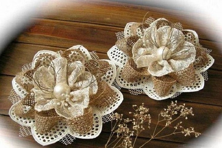 Между собой идеально комбинируется 3-и вида материалов, из которых можно создать пышный цветок — мешковина, шпагат и кружева. Для неопытных мастериц нужен подробный мк, где будут расписаны все шаги работы. Более искушенные рукодельницы смогут воссоздать композицию по рисунку.