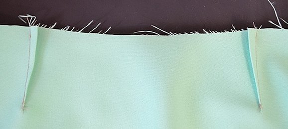 После этого необходимо соединить на машинке задний шов до отметки втачивания потайной молнии.