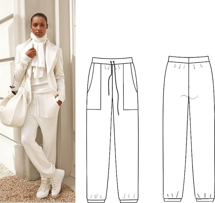 Джоггеры — удобные для повседневных носки штаны, невысокая посадка, плотно облегающие бедра и не сильно заужены к щиколотке. Пошив производится по технике Мюллера. Выкройка предоставлена на картинке ниже.