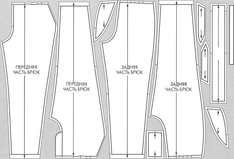 Передняя и задняя половинки брюк — по 2 куска каждого;