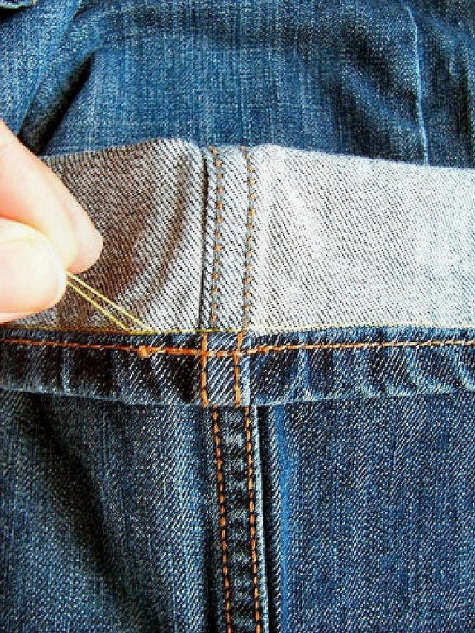 Если вы следовали предыдущим советам, то вам не составит труда правильно отрезать лишнюю ткань джинсов. Рекомендуется сначала отрезать материал на 2-3 см ниже маркировочной линии. Это оставит возможность для дополнительных манипуляций после примерки.
