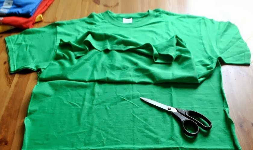 Футболка выкраивается, при этом закладываются запасы на швы: 0,5-0,7 см на стачивание оверлоком и 1,5-2,0 см на подгибку низов, обработку горловины.