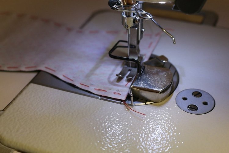 Сколоть или сметать детали. Стачить по трем срезам, оставив участок для последующего выворачивания деталей.