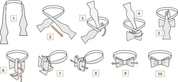 Галстуки-бабочки, сшитые своими руками, завязываются на шее поверх сорочки согласно классической схеме.