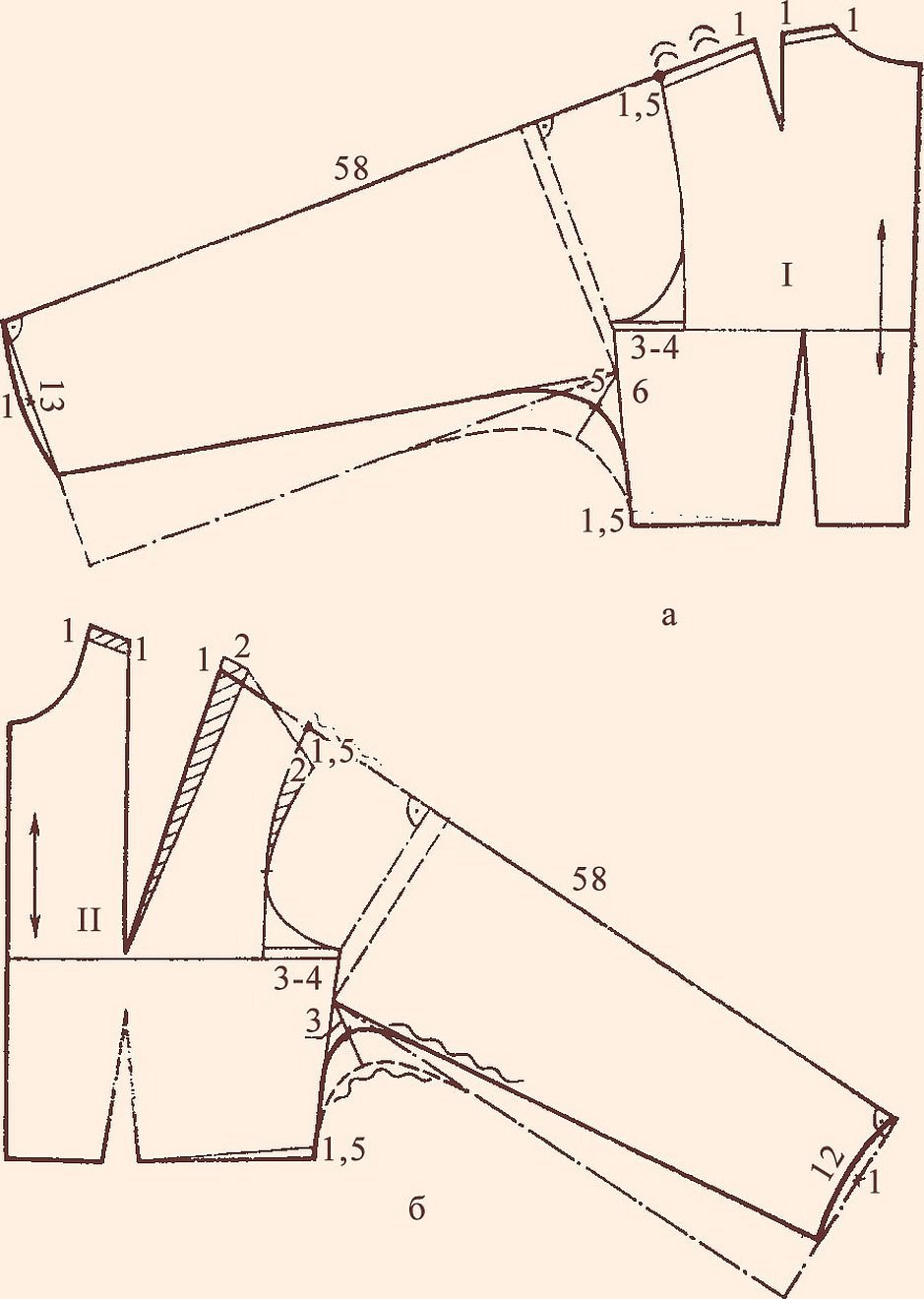 Схема построения модели жакета с широким цельнокроеным рукавом