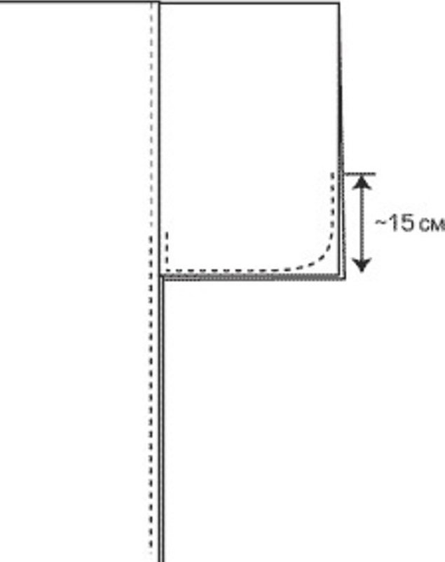 От последнего отрезка откладывают два вертикальных отрезка вверх. В этом месте в ткани будут прорези для рук.
