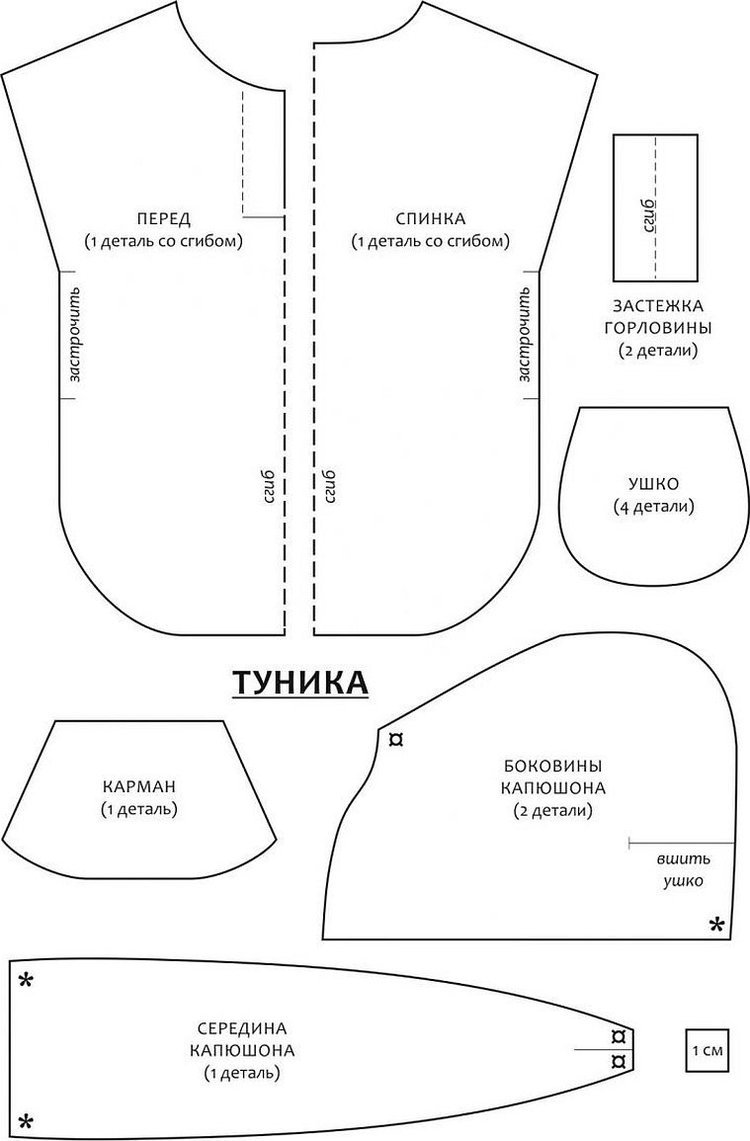 Необходимые пару сантиметров учесть с обеих сторон. Начать делать выкройку нужно с передней части, а затем закончить спинкой, рукавами и горловиной.