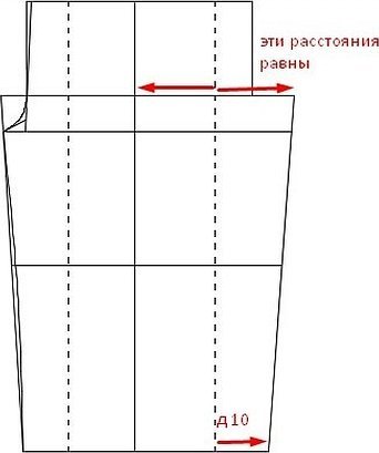 От линии талии опустить вертикаль под названием «Д2», определяющая высоту от линии талии к низу.